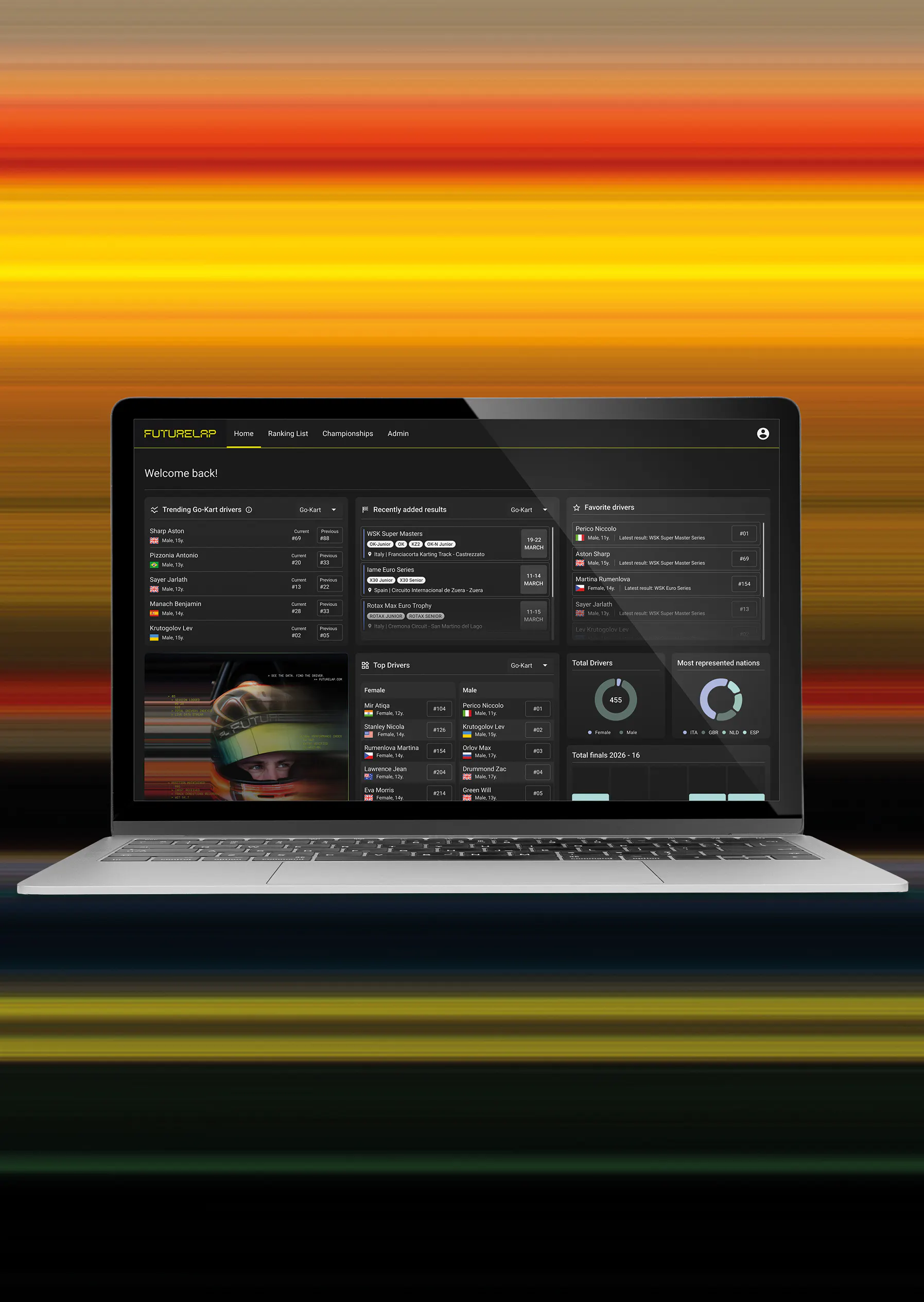 While elite motorsport increasingly relies on data and sophisticated analytics, early-stage competition has remained fragmented, with limited ability to compare results consistently across championships. FutureLap addresses this challenge by transforming verified race results into structured, comparable performance intelligence. The platform introduces weighted driver rankings and analytics dashboards designed to reveal progression patterns, performance consistency and competitive context beyond headline results.